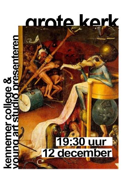 In de week van 8 tot en met 12 december krijgen alle Havo4-leerlingen van het Kennemer College havo/vwo geen les in hun gebruikelijke lokaal aan de Büllerlaan. Een week lang is De Grote Kerk in Beverwijk een Young Art Studio atelier voor de leerlingen van het Kennemer College. De lessen Culturele en Kunstzinnige Vorming worden ingevuld met buitenschoolse kunsteducatie door Young Art docenten en de Young Art Crew. Iedere klas realiseert met behulp van de educatieve tak van Young Art een ‘tableau vivant’, een levend kunstwerk. Een klassiek tweedimensionaal werk, wordt in een nieuw jasje gestoken door het driedimensionaal uit te voeren.